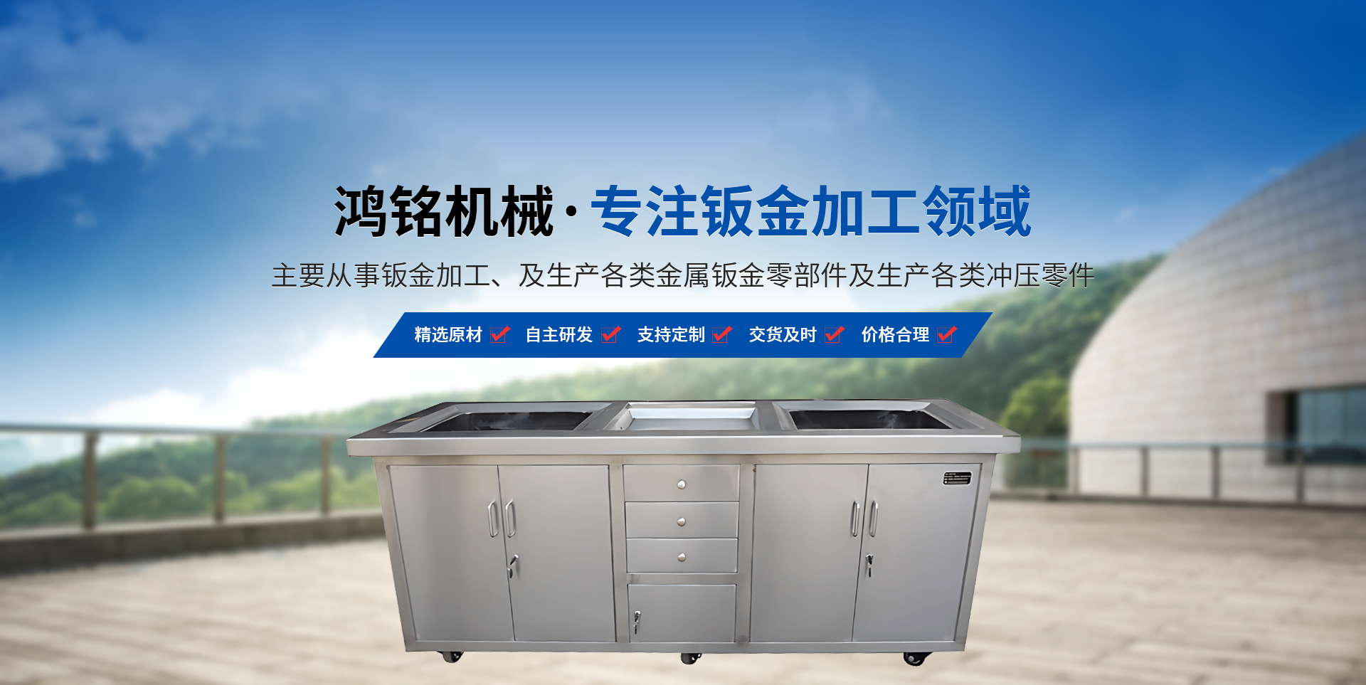 新鄉市鴻銘機械有限公司成立于2009年,占地面積8000平方米,位于新鄉市衛濱區南環路,地理位置優越,交通便利。 本公司設備為德國進口激光切割機,揚力400T折彎機,揚力沖床等設備。主要從事鈑金加工、及生產各類金屬鈑金零部件及生產各類沖壓零件?! 」鹃L期與國內外大型企業合作深受新老客戶的贊賞,同時公司對外承接各類鈑金加工業務(標準鈑金件與非標鈑金件),先后為多家知名企業配套加工鈑金,公司也可根據客戶的需要代為設計,尤其對精度、外觀要求高的產品有獨到的生產經驗。 我們本著"科學管理、全員參與、持續改進、滿足客戶"的質量方針來生產我們的每一件產品。為了在市場競爭中立于不敗之地,公司以質量求生存,以設備保精度。歡迎新老客戶到本公司實地考察?! ”酒髽I建立以來,以"質量保證,信譽保證,交貨及時,價格合理"為宗旨,贏得了客戶的一致好評。面對市場經濟的挑戰,公司將以產品和服務參與市場競爭,為廣大客戶提供鈑金加工平臺。
